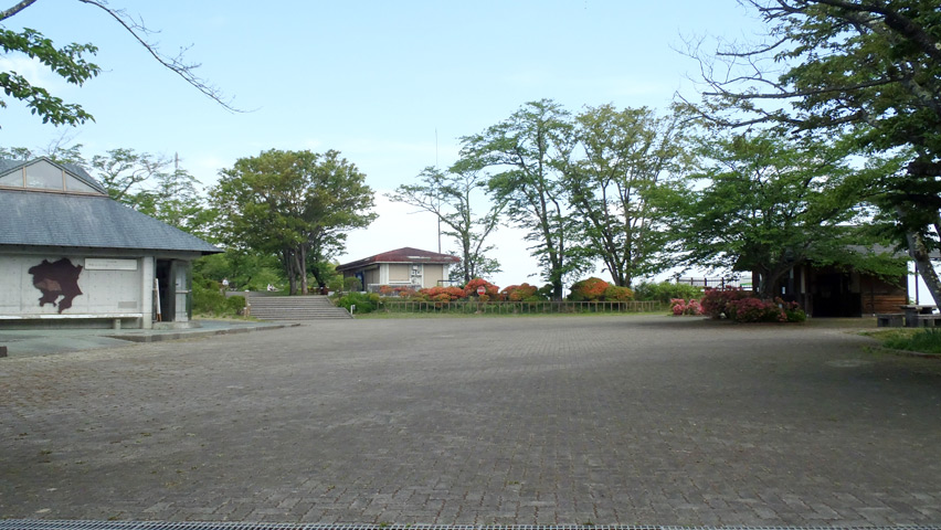 駐車場からの階段を上ってくると、そこには売店や資料館などが建つ、かなり本格的に整備された敷地が広がっていた。わ、美の山公園ってここまでしっかりしたものだったのか!
