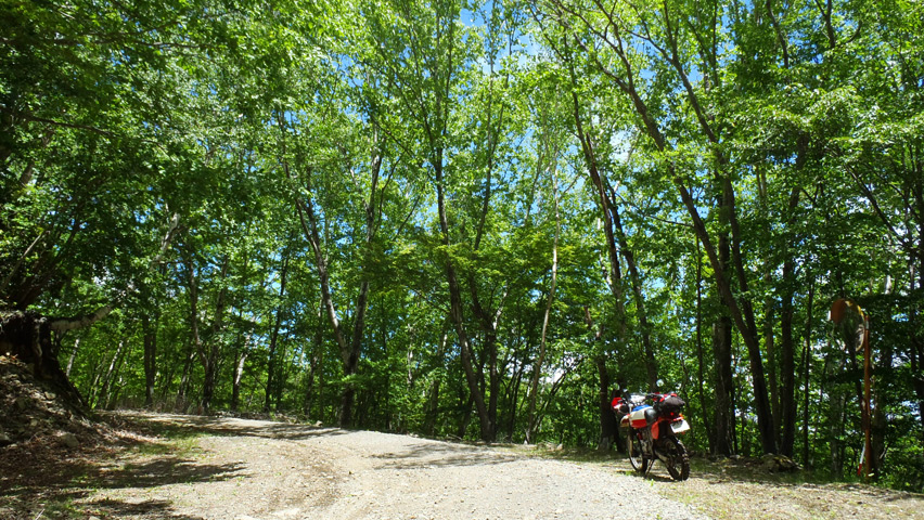 ああ、本当に嬉しいなあ。再開通した中津川林道で、こうして木々の色素が周囲の空気にまで溶け込んだ空間を走っていると、それだけで何ともいえない満足感で満たされる。
