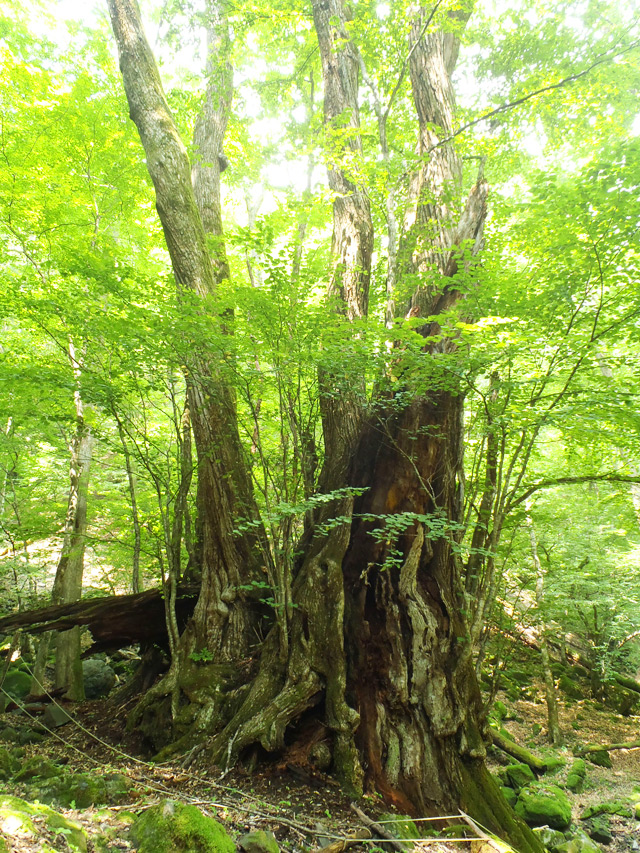 大カツラは、斜面を流れ落ちる金蔵沢の脇に立っている。あまりに素晴らしいロケーションのために、正直ここで昼飯にしたいくらいだったが、飯にはまだだいぶ早い時間なので、惜しいけどここではパスすることに。