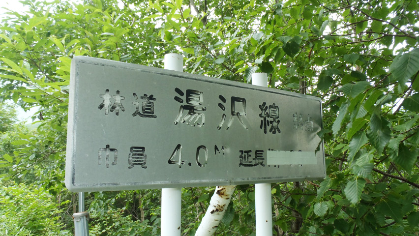 ここにあるのも林道湯沢線の起点標識だ。そうそう、俺が知ってるのはこっちなんだよ。だから、さっき見た起点標識があるのが意外だったのだが、こちらには「延長:14,368m」と書かれている。恐らく、最初に見た標識からここまでの距離を差し引いた数値なのだろう。