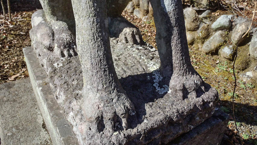 阿形、吽形共に足元の爪の造形なども細やかに造り込まれている。素朴な造形の中にも、石工の拘りがしっかりと感じられる造形だ。