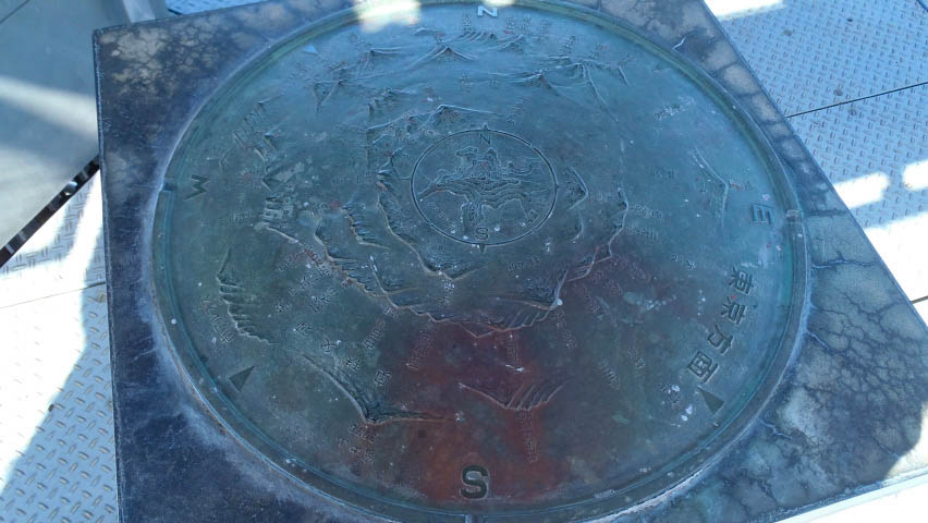 展望台の中央部には、城峯山を中心に据えた鋳物の地図も設置されている。