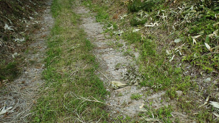 ここはもう直感で、一旦右手の道を選んで進んできたが、幅員も一気に狭くなり、道の両脇からは藪が迫り出してくるようになった。