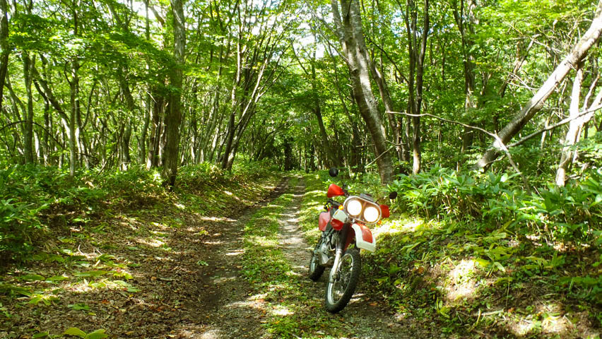 東北といえど、この猛暑のせいで気温は高くとにかく暑いが、それよりも宮城の林道を走れている喜びが何倍も勝り、この美しい森の中をずっと浮かれ気分で走っている。