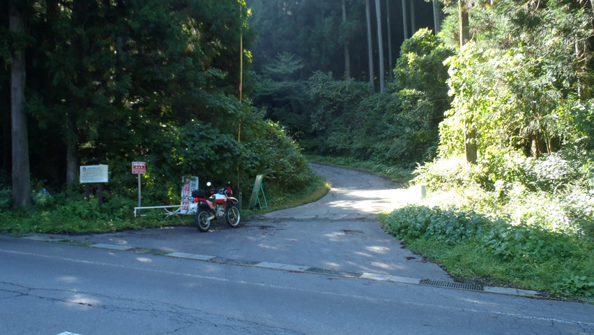 展望広場を後にし、林道湯沢線の起点にやってきた。前回ここに来た時、なぜかこのまま直進して少し遠回りをしてしまったのだが、本当はここを左に曲がるんだよね(笑)。