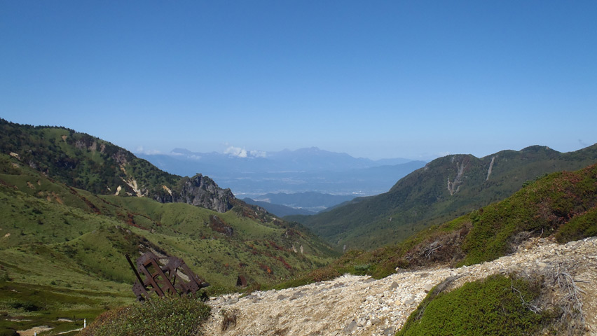 途中、残土を盛った場所なのか、フラットな広場があったので寄ってみた。ここからも向かいの山々がくっきりと見えている。