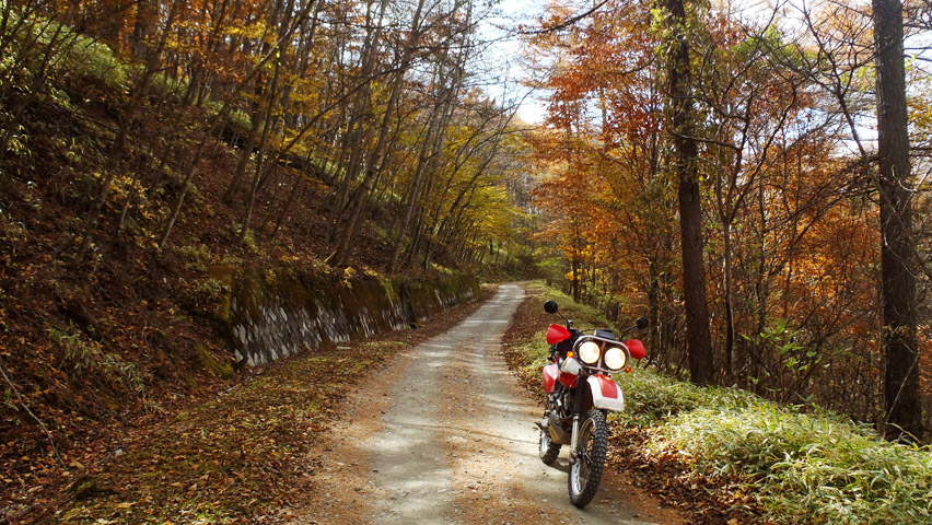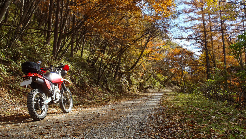 途中の舗装区間から見る景色も、山肌のカラマツがいい具合に陽を受けて、実に鮮やかな色彩を見せていた。