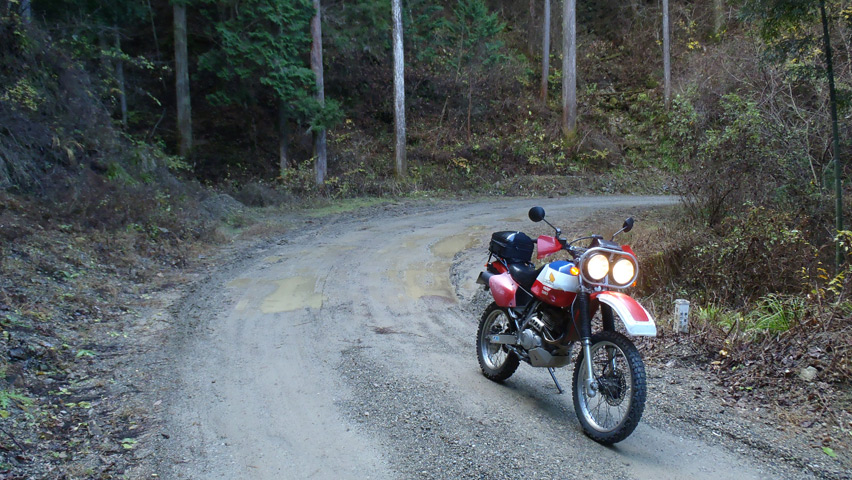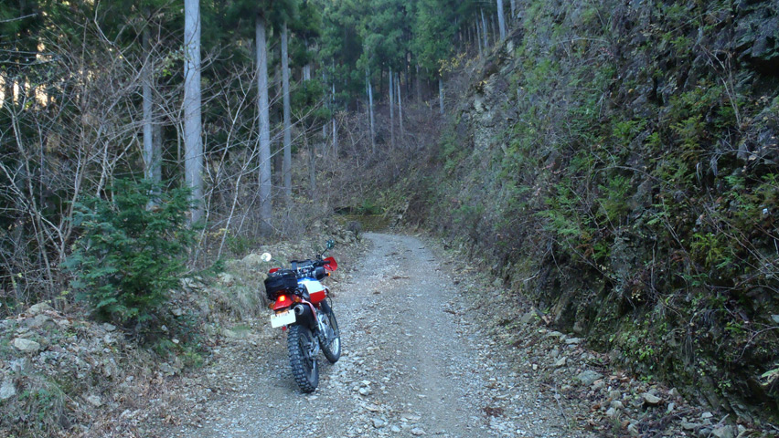 しかし、ダート区間を進んでいくと次第に道が荒れ始めた。上の写真はだいぶ落ち着いた地点まで上ってきて撮ったものなのだが、この手前はというと、路面には洗堀が走り、道の周囲は藪に覆われた廃道と見まごう姿に変わり果てていた。