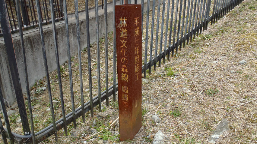 続いて、桧山路線から10分ほど走り、平井地区にある林道文化の森線へ。ここには全体を錆に覆われた林道の標柱が経っているのだが、ここがどんな景色になっているかというと・・・。