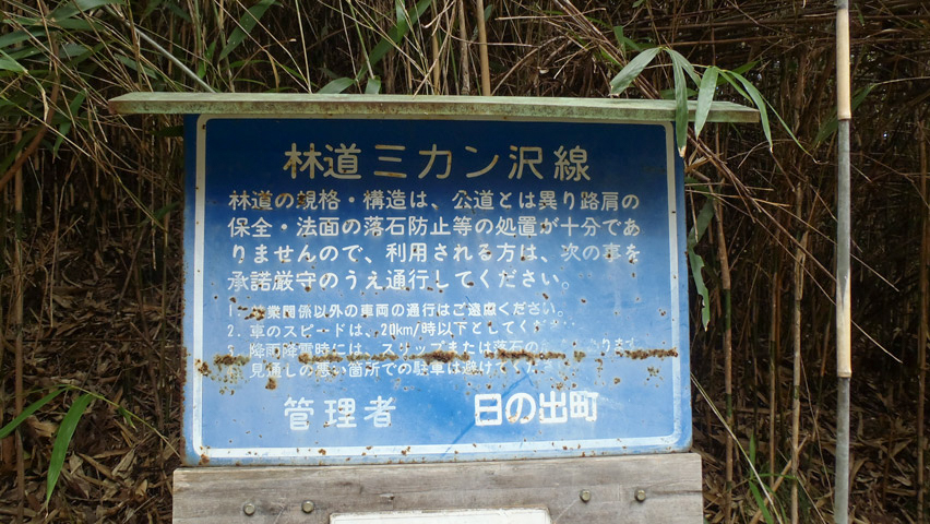 文化の森線を引き返し、続いてやってきたのは林道ミカン沢線。ただ、こちらは入口からチェーンゲートで閉鎖されている。
