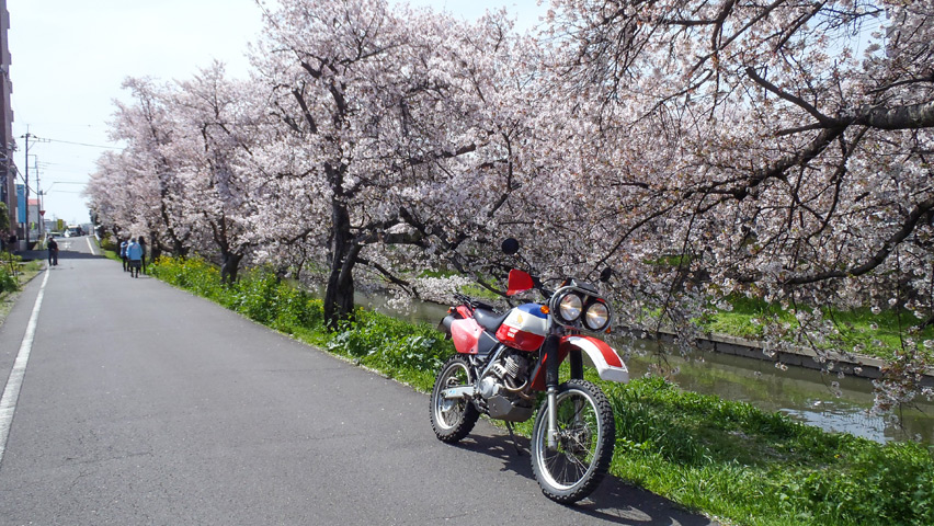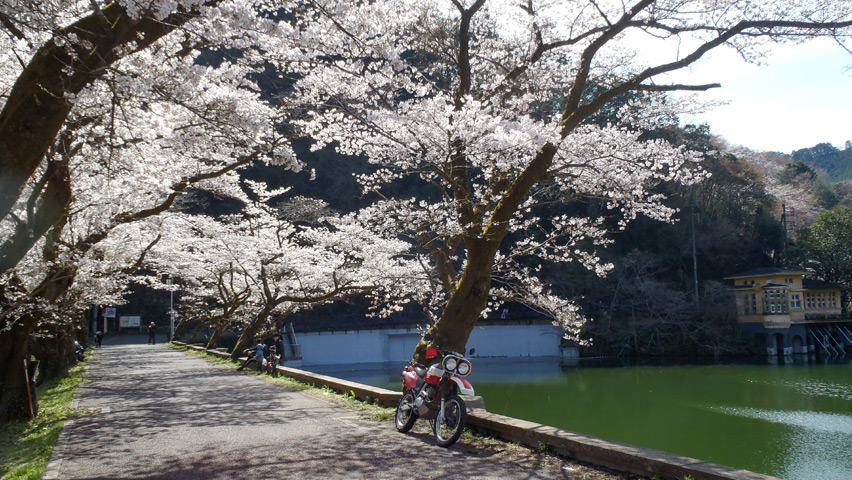 鎌北湖畔でもそうだったんだけど、こうして桜の下でBAJAの写真を撮っていたら、爺様3人くらいから次々と「バイクと一緒に撮ってあげようか?」って声をかけられて、でも「自分は写らなくて大丈夫ッス!」と言ってことごとく断っちゃったんだけど、いま思えば撮ってもらえばよかったかな、爺様とのコミュニケーションって意味で(笑)。