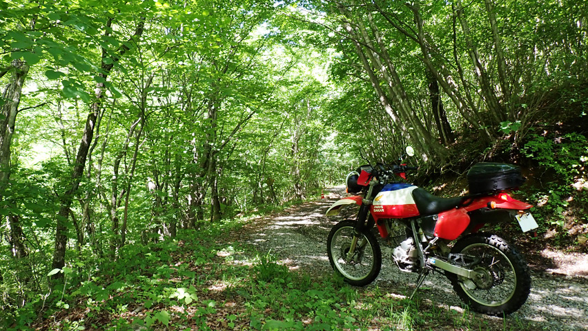 最初、(あれ、もしかしてここって舗装林道?)と思ったものの、起点から約400m地点で路面は未舗装に変わった。