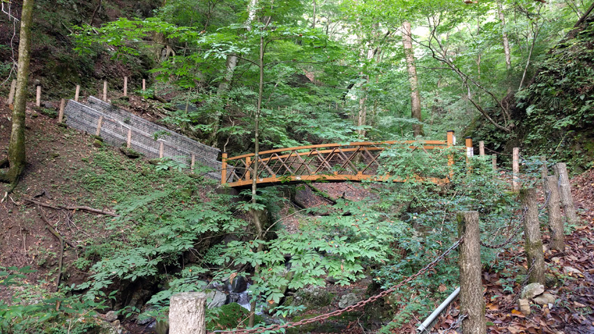 それより、この展望台に行かずに右岸の道をそのまま進めば、滝壺まで行けるようだ。せっかくならそっちへ行ってみよう。
