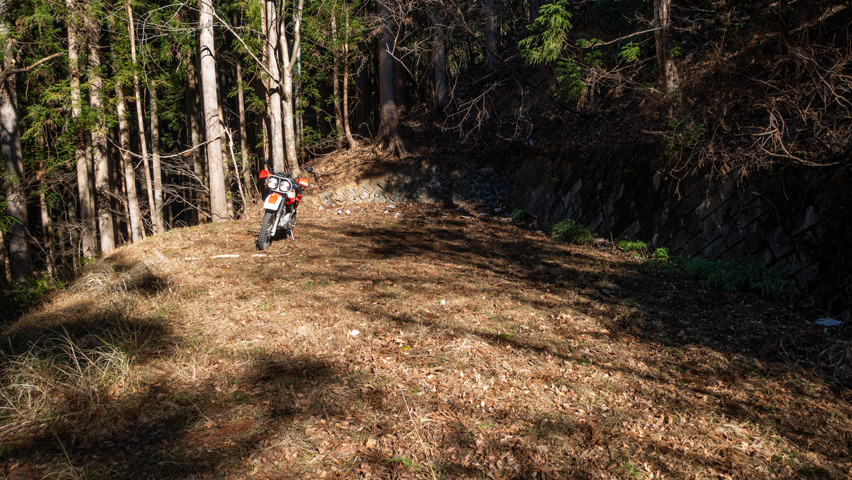 戻りがてらもう1枚。ここ、落ち葉に覆われていて見えないけど、たしか山側の路肩に側溝が開いてるんだよな。こんなところに来る人もそうはいないだろうけど、来るときは気を付けてね。