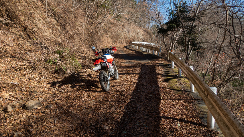 初めて走ったときからはだいぶ舗装区間の延びてしまったこの林道だが、こうして冬枯れた景色の中を走っていると、これはこれで悪くないな、とは思える。