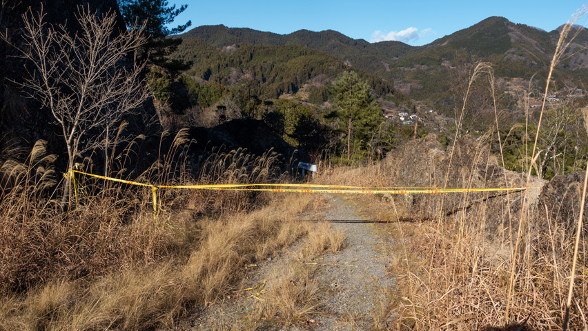 その途切れた道の先は、そのまま地形が谷底へと落ち込んでいる。誤ってここを直進したら、そのままこの谷底へ真っ逆さまとなってしまう・・・。