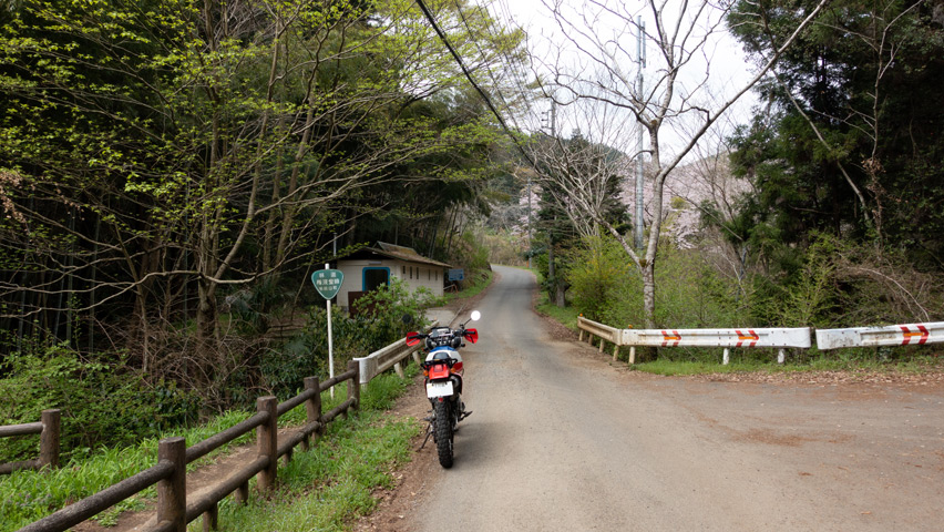 そして、500mほどのダートを上り続けて行き止まりの終点に到着。以前来た時からすでに10年以上は経っていると思うけど、驚くほど道に変化が無いように感じた。ただ、今この写真を見ると、路面がやけに綺麗に見えるのは、もしかして下草が刈り取られていたりするのだろうか。こんな行き止まりの林道、何も手を入れてなければもっと草に覆われていても不思議ではない気もするけど・・・。