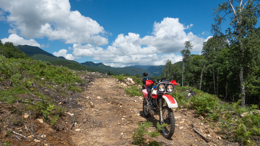 俺は毎年夏になると、何故か思うように林道を走れないことが多くて、そんなもんだから今日こうして真夏の青空の下で大好きな林道を走れていることが本当に嬉しくてよぉ!いまの俺が如何にテンションが爆上りしてるかが伝わるかい!?