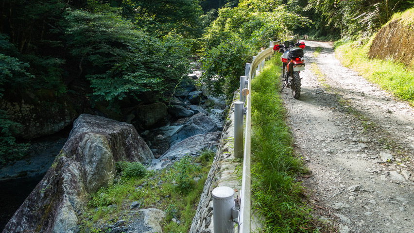 中津川林道は今も2019年以来の通行止めが続いているが、この先にキャンプ場があるおかげで、こうして僅かでもダート区間を通れることが本当に嬉しい。