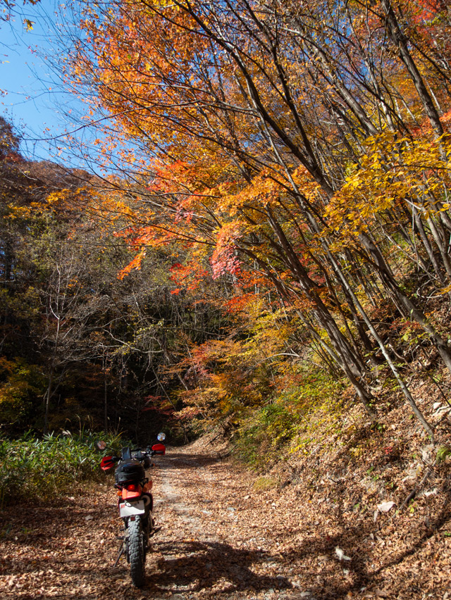 というわけで、秋鹿〜万沢を走り抜けてきた今年の紅葉林道ツーリングでした。次に林道へ行けるときは、もう紅葉は終わっている頃になると思うけど、今年も最高の天気の中で、最高に美しい紅葉を見ることが出来て本当に良かった。