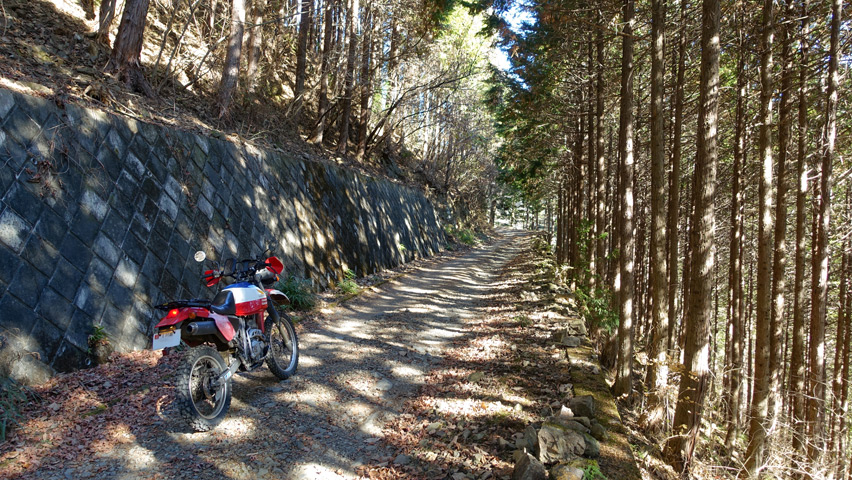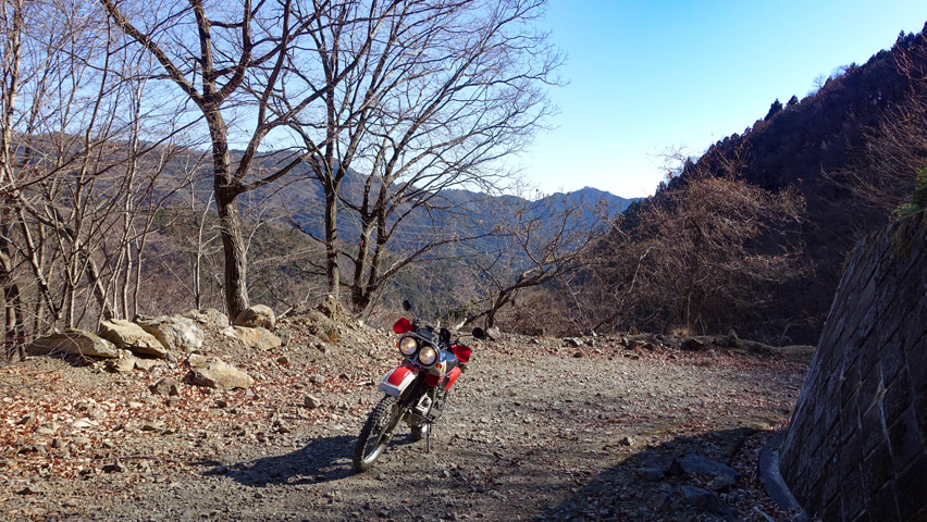 木々が冬枯れたこの季節は、毛細血管のように伸びた枝が、道の周囲を覆い尽くすように広がっている。奥多摩の林道というと、俺はこの景色がとても印象深いんだけど、それはかつて秋から冬にかけての季節に、この周辺の林道に来ることが多かったからかもしれない。小川谷線や日原線が走れていた頃が懐かしいなあ・・・。