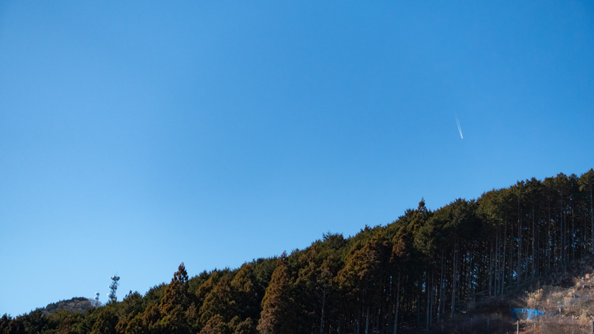 そして見上げれば、雲ひとつない空の只中に、航空機が白い飛行機雲を描いて飛び去って行くところだった。もう!俺の好きな冬の情景がテンコ盛りやん!