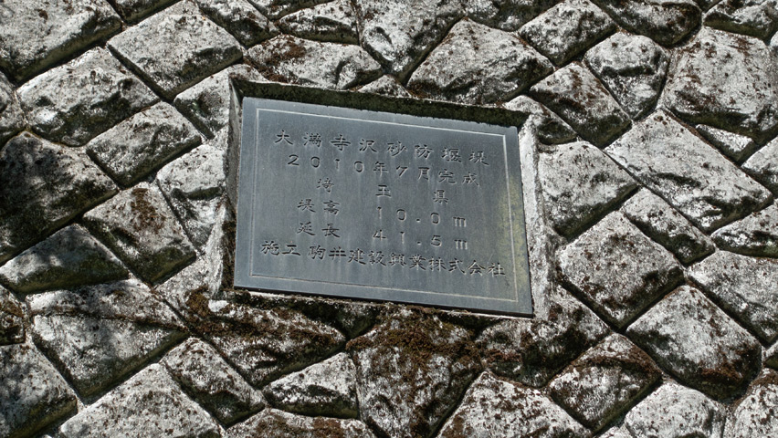 そして、その背後の堰堤はかなりスケールの大きなもので、これと組み合わせての効果を鑑みてのこのD型のサイズなのだろう。ちなみにこちらの堰堤は、銘板には大満寺沢砂防堰堤と記されていた。