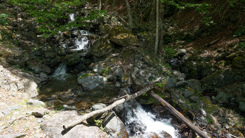 名もなき小さな橋の上から、その下を流れる清涼な沢を見る。ここ、綺麗だったなー。ツーリングだったら間違いなくこの沢沿いに腰かけて昼飯にしてるところだ。