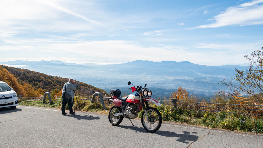 それでも、今日はこの林道に来ることを第一の目的としていたので、それで何ら構いやしないのだ(笑)。ずっと見たかった秋の湯の丸高峰林道のこの景色の中を、思うままにのんびりと走り抜けることの、何と贅沢なことか。