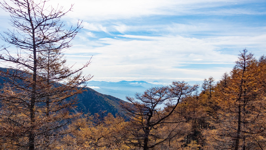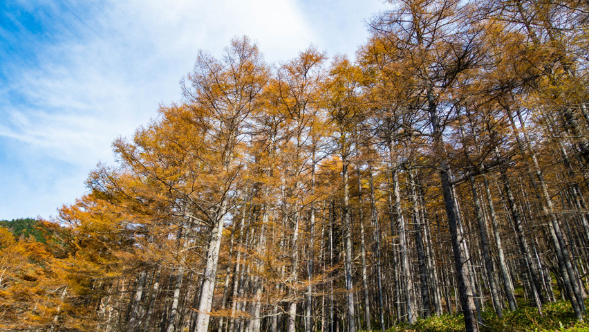 見てくださいよこの美しさ。俺、カラマツの黄葉って本当に好きなんですよね。