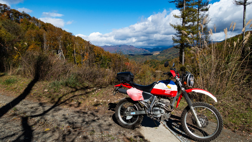 なにより、地域によっては雨予報もあった中、こんなにいい天気の下で林道を走れることが嬉しくてたまらない!日帰り予定とはなってしまったが、今日一日、目いっぱい楽しむぞ!