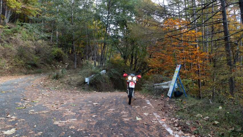 BAJAから折りて写真を撮りがてら、深まりゆく秋と冬の始まりの交じり合ったこの景色をしばし眺める。いまこの瞬間、この景色のなかに佇んでいられることがたまらなく嬉しい。やっぱり俺には林道がないと駄目なんだよなあ。