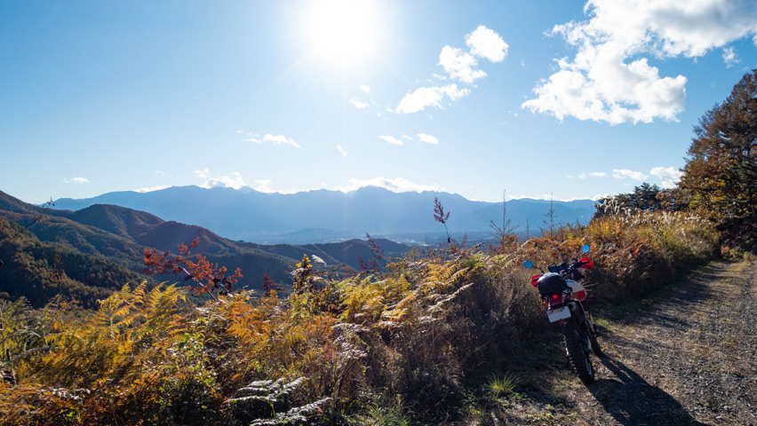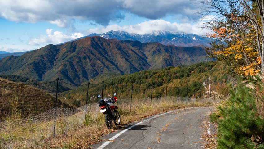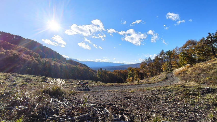 そして、ついに松平線の終点に辿り着いた。初めて走った日に、これだけの素晴らしい景色を見せてくれたおかけで、ここもまた大好きな林道のひとつになった。またいずれ、秋になったらこの季節の景色を見に訪れたいし、季節を変えて緑のシーズンにも訪れてみないとだな。ありがとう松平線、また来るよ!