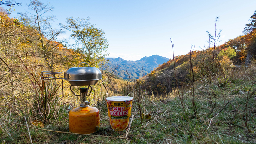 で、せっかくなんで、ここで遠くの山々を眺めながら、最近は一回のツーリングで必ず二回食べると自分に課している(笑)山ラータイムにしよう。