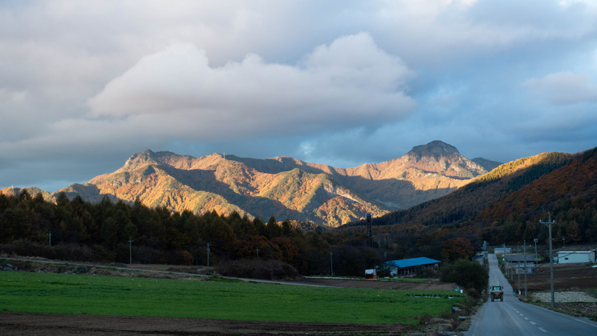 今日も一日が終わりつつあるが、それは山に棲む生き物たちの時間の始まりでもある。紅葉の林道を走るたびに思うのだが、山の動物たちも、この鮮やかな色彩の景色を前に、何かしら感じたりすることはあるのだろうか。